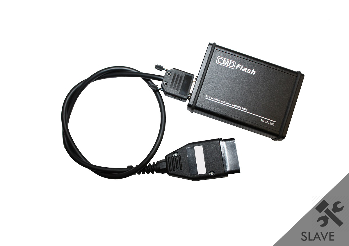 The CMD-Flash is a tool which allows you to have the OBD plug on the vehicle data from the control device to read and to write. The big advantage is that the control device doesn't have to be opened and no soldering is needed. All data exchange happens on the OBD connector.