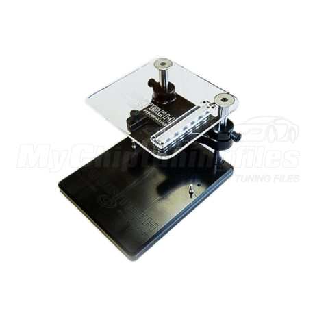Positioning frame to establish connection with the ECU including programming probes with LED illumination deck. it allows you to lock the ECU on your support, making your work easier and faster. Thanks to the adjusting support you can set your adapter at the right distance from the programming pads. The adjusting support includes two screws that will lock the adapter. Another support, made of plexiglas, holds up the K-tag making the connection easy, also thanks to the LED strip that lights the interested area. The programming probes will then allow you to establish the connections with no solderings. Alientech positioning frame evo with illumination
